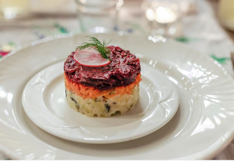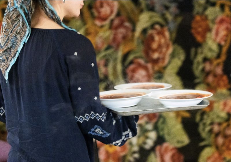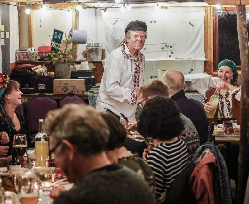 Guests are invited to a sit-down three course meal, including dumplings, spicy sauce Adjika, stuffed cabbage rolls Sarmale and ferments. Sweet drinks such as Kvass and probiotic savoury drinks (Brine, Borsht Acru) will also be on offer.